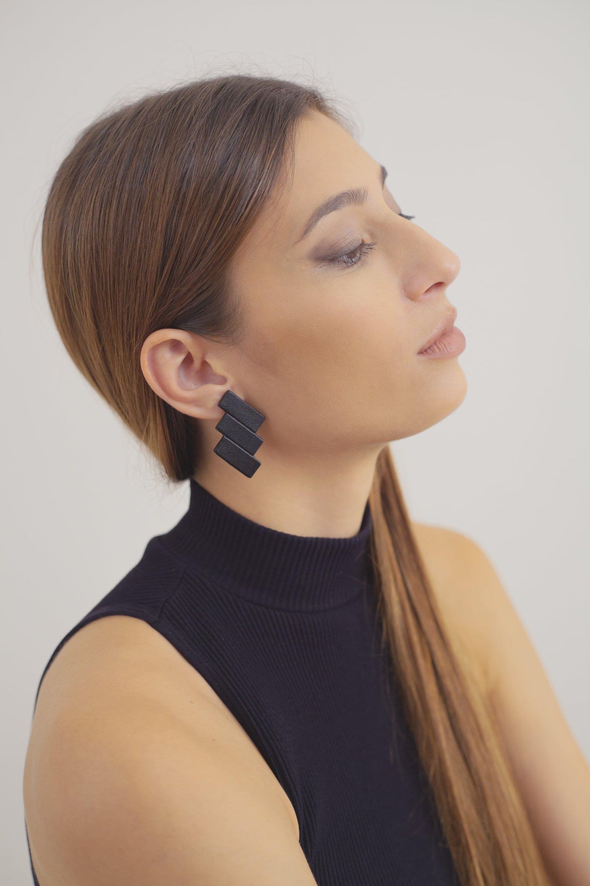 Están realizados con eco-cuero reciclado y fornitura de acero quirúrgico. Todos nuestros pendientes están hechos de manera artesanal y llevan muchísimas horas de trabajo detrás. Se trata de piezas únicas que podrían presentar ligeras variaciones casi imperceptibles :)