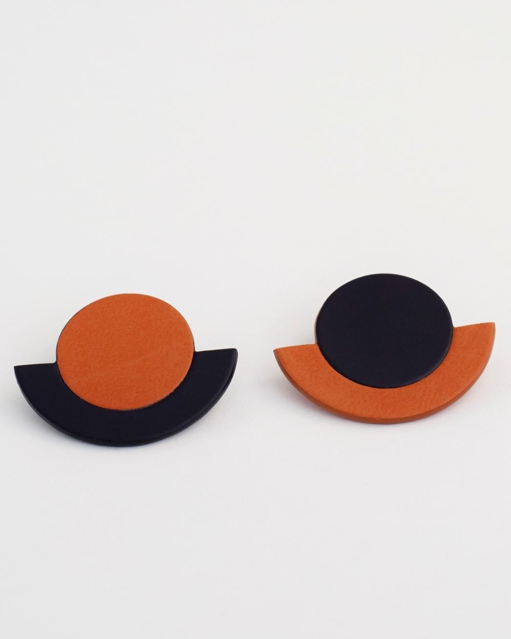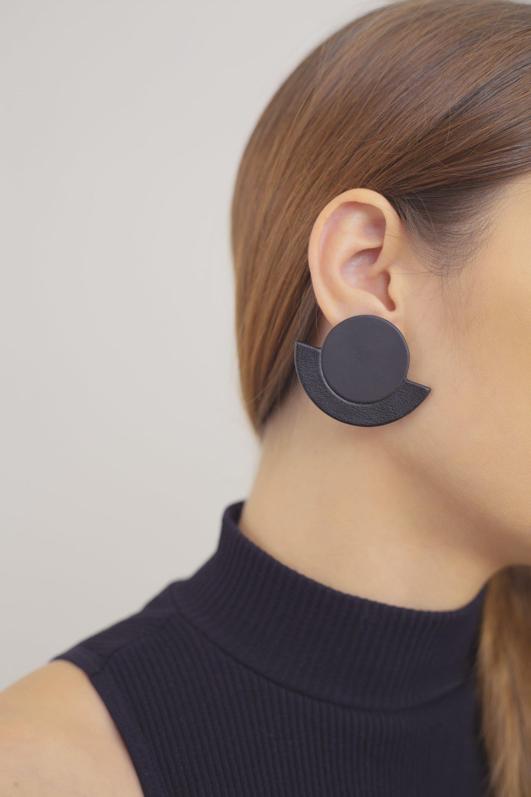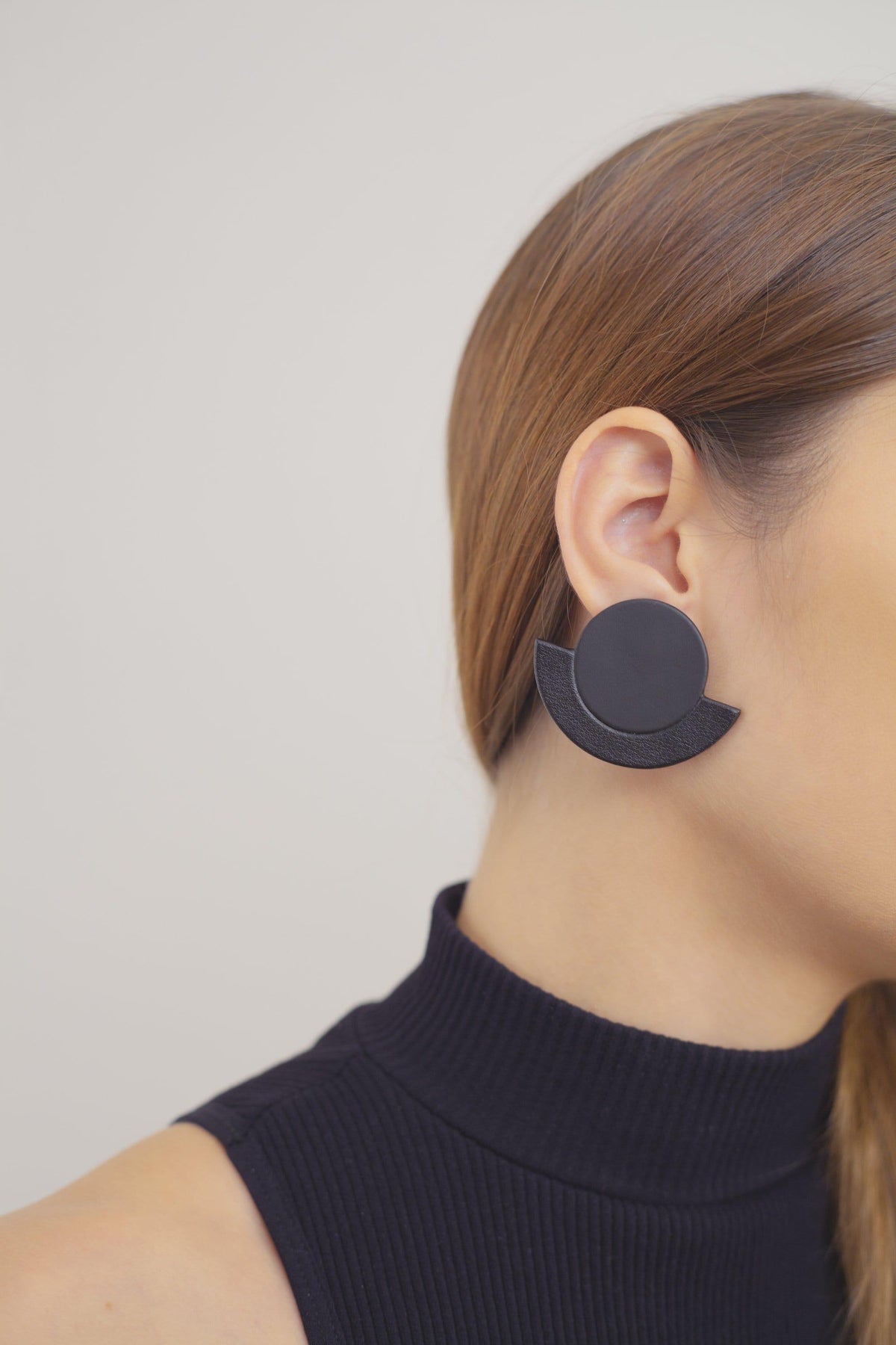 They're made with recycled eco-leather and surgical steel trimming. All our earrings are handmade and take a lot of working hours. They're unique pieces that could imply almost invisible variations :)