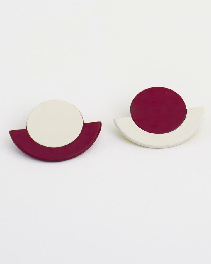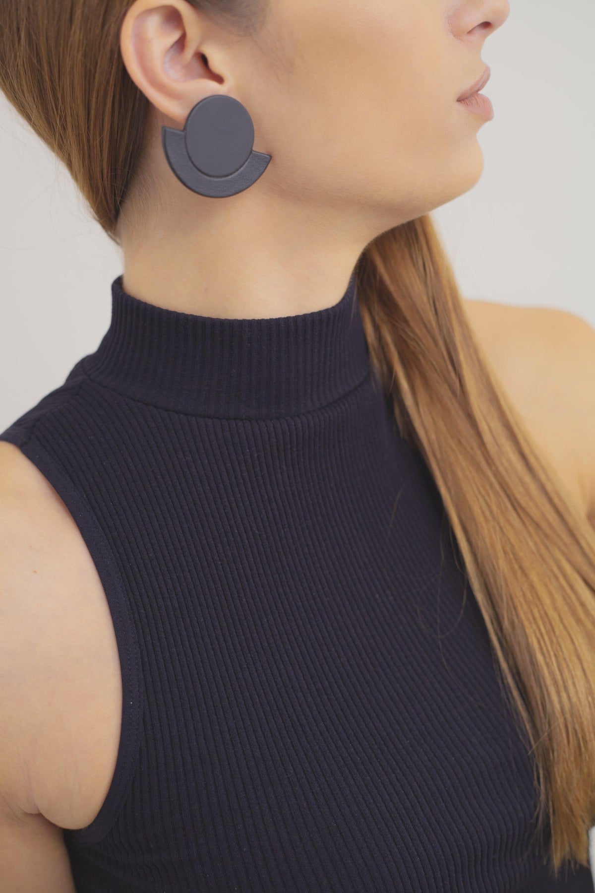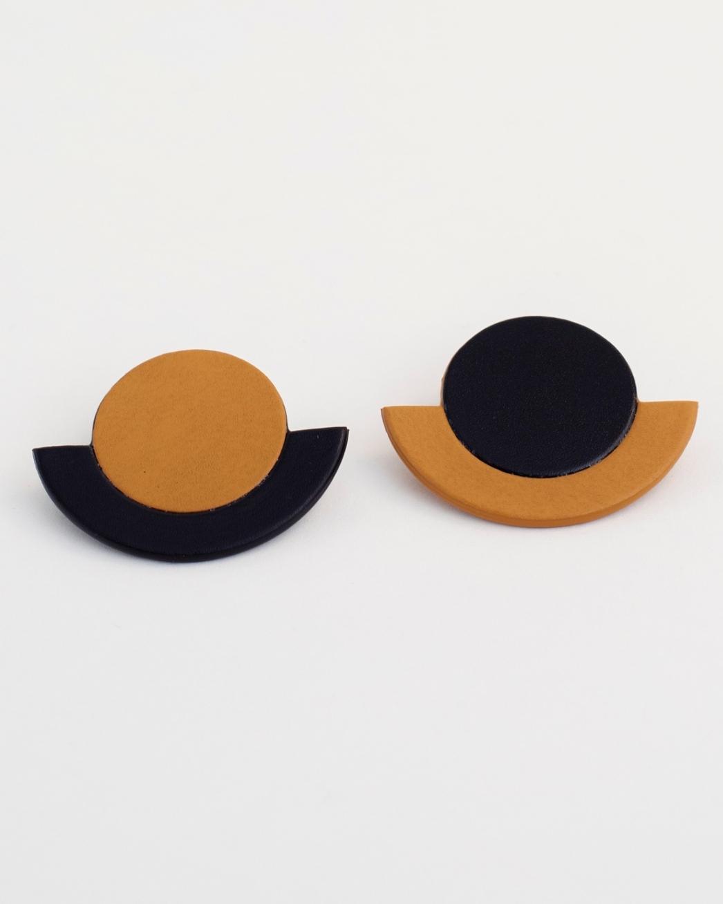 They're made with recycled eco-leather and surgical steel trimming. All our earrings are handmade and take a lot of working hours. They're unique pieces that could imply almost invisible variations :)