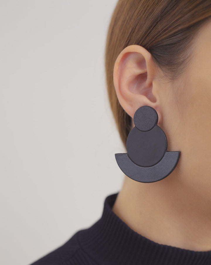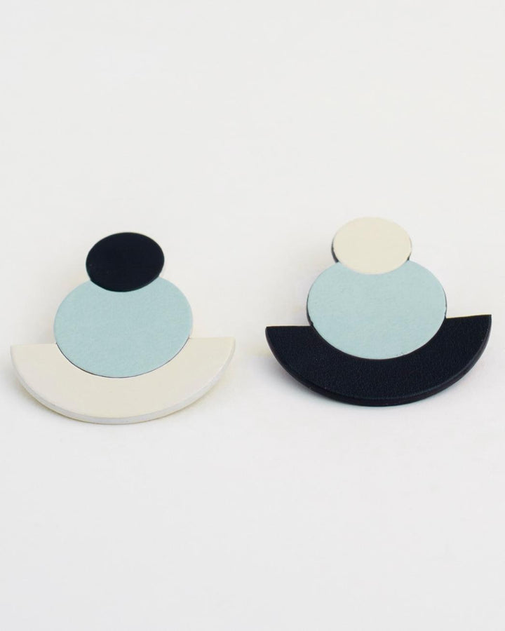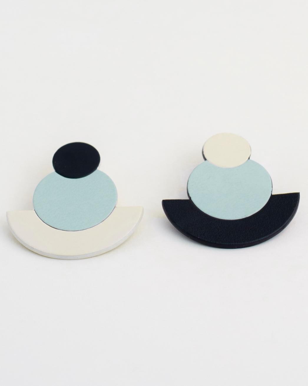 They're made with recycled eco-leather and surgical steel trimming. All our earrings are handmade and take a lot of working hours. They're unique pieces that could imply almost invisible variations :)