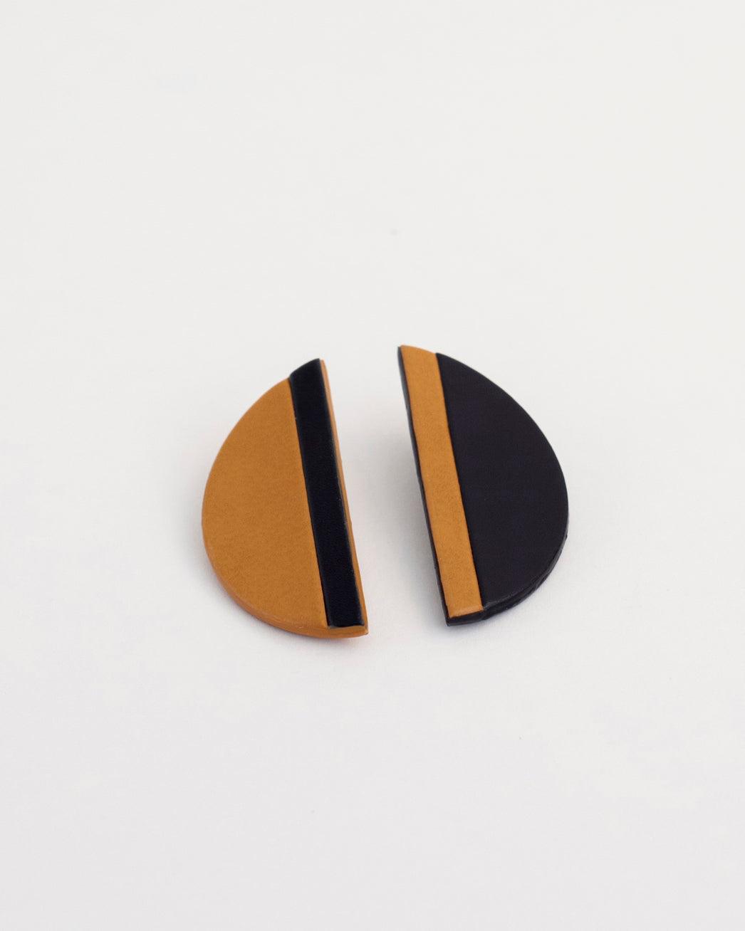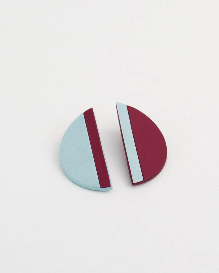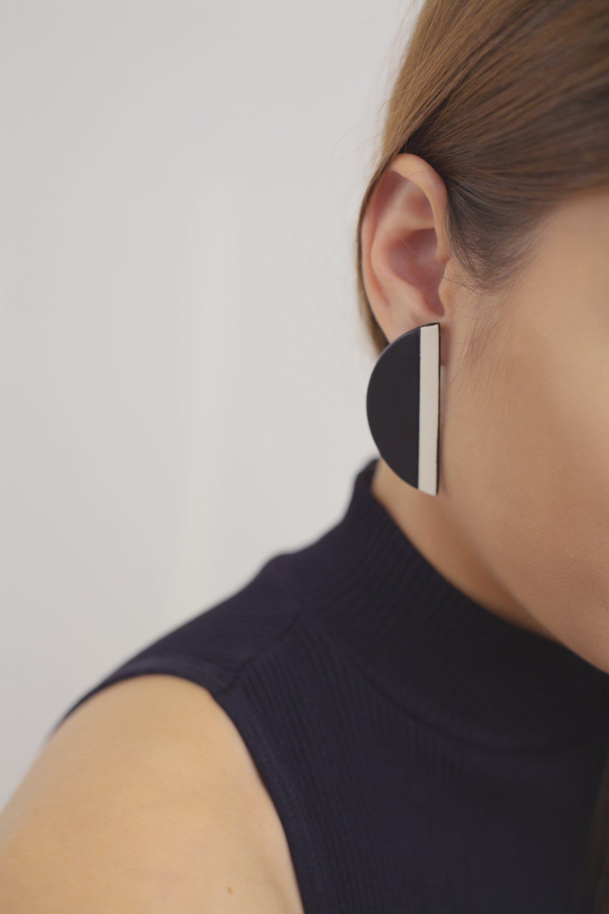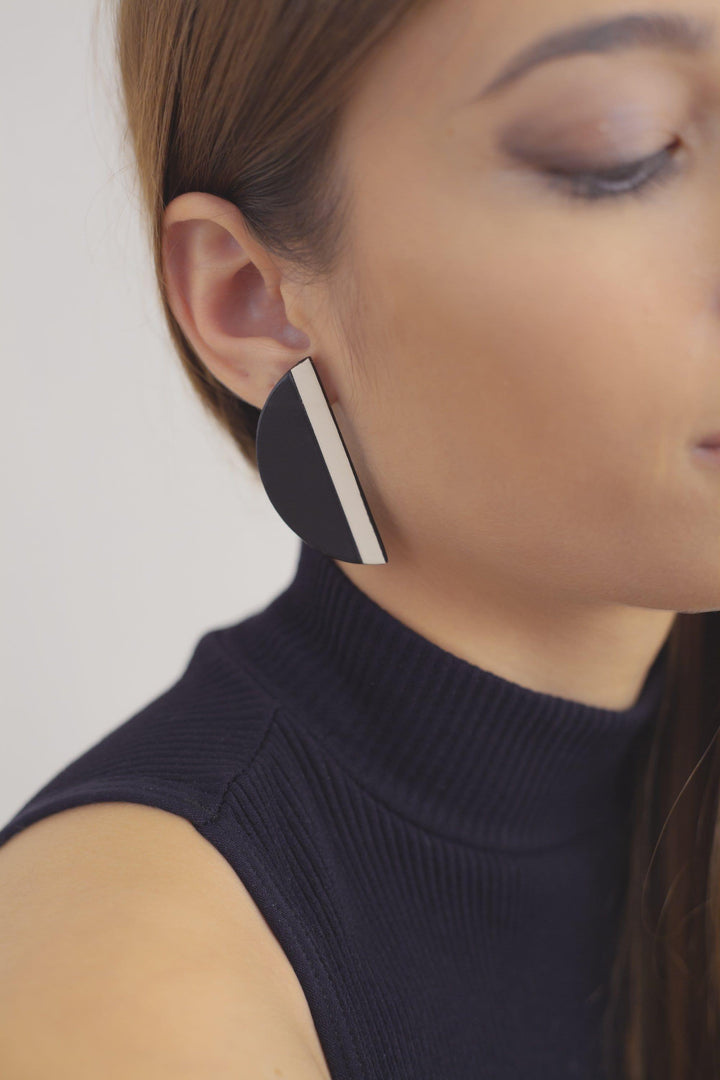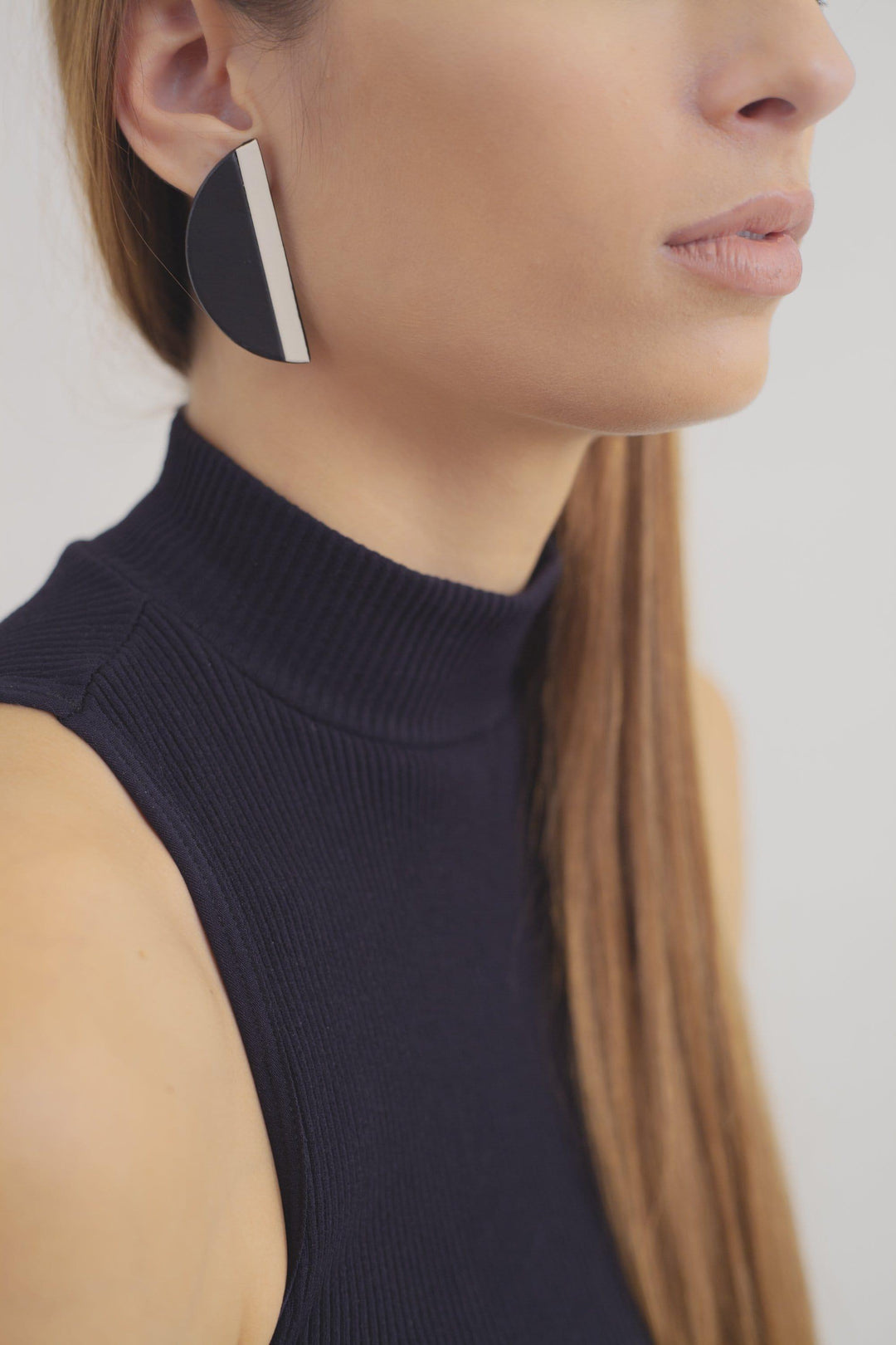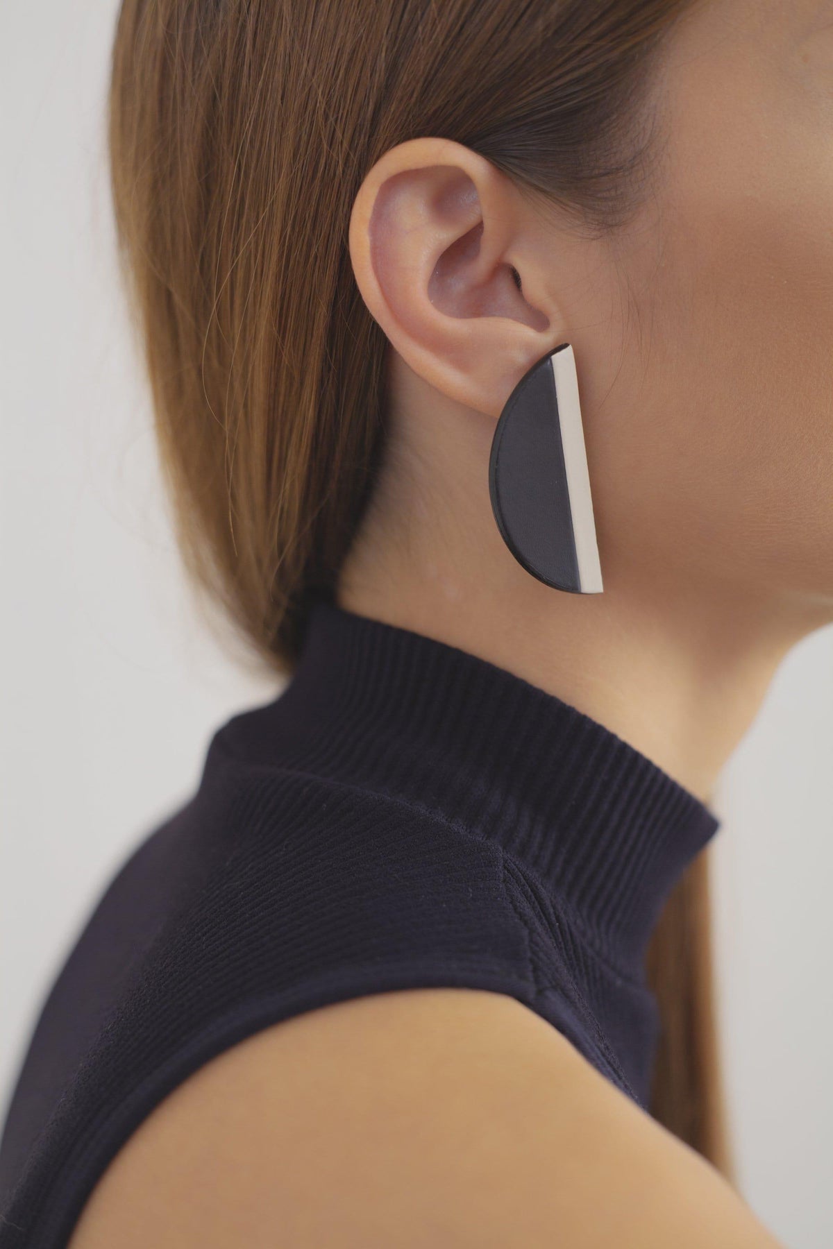 They're made with recycled eco-leather and surgical steel trimming. All our earrings are handmade and take a lot of working hours. They're unique pieces that could imply almost invisible variations :)