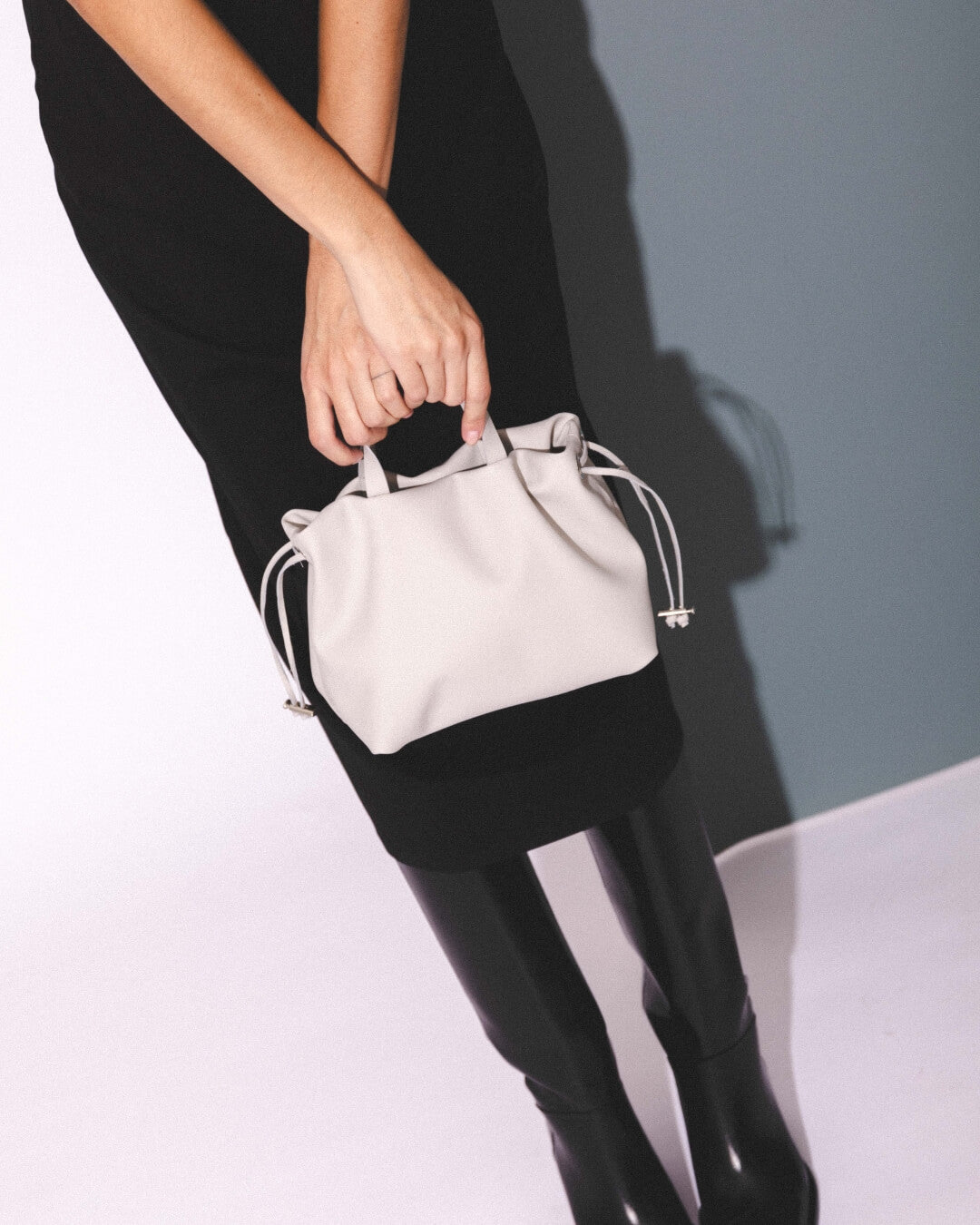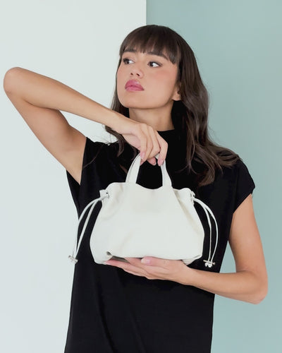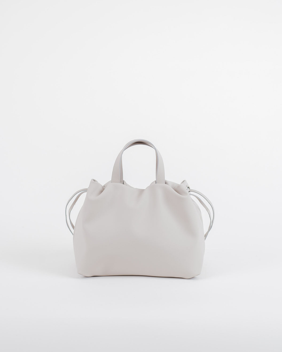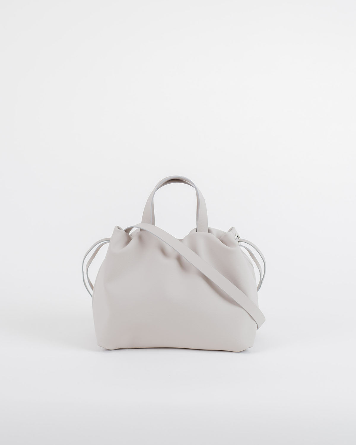 Tiene cierre de cordón que le da ese aspecto fruncido, además de un cierre de imán central y en el interior está forrada con lona de algodón orgánico muy agradable.